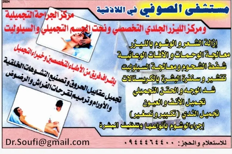 مشفى خاص حائز على العديد من الجوائز العالمية.. تجميل.خلايا جزعية.عمليات جراحية.زرع شعر.نسائية وتوليد.اسعاف على مدار ٢٤ ساعة